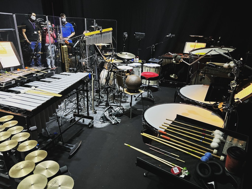 - Drum kit + cymbals (electronic and acoustic)